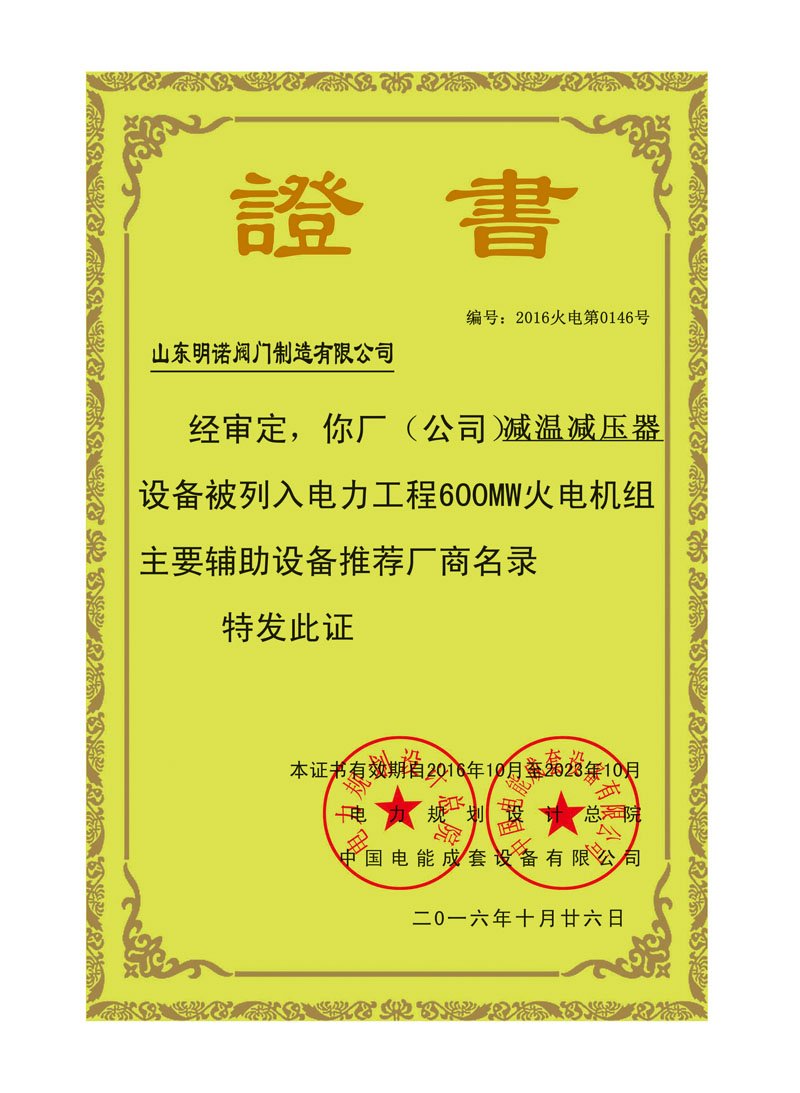 電(dian)力工程600MW火(huǒ)電機證書(shu)